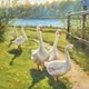 Geese Rural Landscape Oil Painting Original Summer Painting Handmade