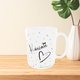 马克杯插图背面,可自选文字,我们会帮您写在马克杯上。一律使用黑色字,有五款字体可供选择。刺猬是手绘,然后印上瓷杯的,也可选用其他指定的刺猬款式。**欢迎联系设计师。**