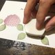 ② Apply ink to eraser rubber. When making a gradation, for example by adding light blue, partly add purple and push it over hydrangea.