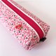The pen case consisting of pink kimono fabric and a vivid pink zipper will brightly stand out on your desk.