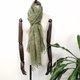 大地色糸百搭刺绣文青风格子全麻围巾-郊游乐