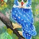 - 猫头鹰绘画。 画布上的原创油画..画作尺寸 15 x 10 cm (6 x 4") 艺术家在画布面板上绘制的油画。色彩鲜艳的油画。艺术家创作的每幅油画都是独一无二的。