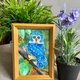 一幅带有鲜艳色彩鸟的小油画。 送给朋友的好礼物,送给孩子的好礼物,送给祖母的礼物。