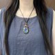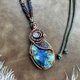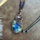 使用天然石,配以纯铜线,以绕线方式手作而成, 然后再加上复古做旧效果, 再抛光处理令花纹更具深度和对比.