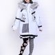 袖子为一边印花、一边庞克风装饰得不对称设计