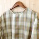 **【 圆领袖压折上衣/ 黄蓝格纹 】**