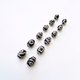+ 图腾蚀刻玛瑙鼓形珠约 16 x 12 mm:蚀刻玛瑙工艺最早可追溯至美索布达米亚平原及古印度文明,之后辗转流传至西藏,又称为天珠。常见的制作技术为,以腐蚀性颜料绘制于玛瑙上,并经过加热等处理程序,最后形成我们所见的图案。