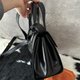此款 Loewe So Black Kelly 手提包以全黑设计呈现,低调而不失质感。细腻平滑的皮革搭配压印式 Anagram 标志,展现品牌一贯的工艺水准与现代极简美学。