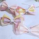 ▶使用材料:多种材质缎带搭配组合、金属弹簧夹、合金配件、塑料珍珠