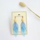 耳针/耳夹式-可改胸针发饰-梦幻真丝纱叶子蓝色黄铜金色叶子拼垂坠耳环垂吊耳环
