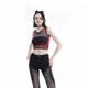 透视背心设计,胸口做有织带装饰,可驾驭多种搭配