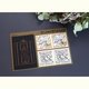 此组合内含方形邮票造型烫箔贴纸 4 枚,以及一个贴纸盒。