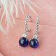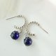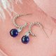 深蓝色天然星光蓝宝石垂坠耳环,925纯银材质