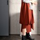 - / 毛料中长裙 / 斜开口袋 后腰弹性松紧 / 斜切角落片设计 / 左右不规则线条 / 线条流畅 随兴穿搭便风格十足
