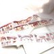 那一排海景,白色的建筑一层又一层,强烈的阳光让建筑彼此投影着。 这是可以一层一层叠上去的建筑体,可以自行决定要不要剪掉投影部分。 5cm x 5m 重雾透明pet带底纸 特油、白墨