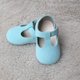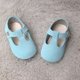 - 浅蓝色真皮婴儿鞋 满月礼物 手作学步鞋