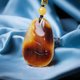 商品赏析:此款沁色蜜蜡项链坠暖润如光,右侧以深沁茶琥雕出静谧佛陀侧颜,眉目宁定、慈悲内敛;左侧则以原皮俏色巧妙化作绽放莲花,一花一佛相生相成,寓意“莲花生佛、佛由心生”。