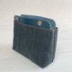 冈山牛仔真皮多袋鞣制皮革宽角撑化妆袋皮革袋靛黑