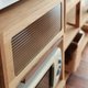 最上层的层架可以取下。想收纳搅拌器等较高的物品时就很方便。当然放了层架就会扩大收纳空间,能依用途自由变换摆设令人高兴呢。涂装是以“Oil”保留木原本的质感并保护素材。虽比起Urethane会比较容易附上脏污或伤痕,但同时也会增加独特风味与风格。这是高品质素材才有的魅力。