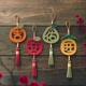 象征大吉大利的橘子、平安圆满的苹果、好运旺旺的凤梨、保佑顺利的柚子。配着缤纷的半植鞣皮革将它们悬挂在门前,或是装饰在客厅、办公室,随着摇摇晃晃的小流苏,让祝福传递到每个角落,期待一整年都能充满好运气!