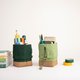 像杯子一样,又可以携带的**Bucket+**收纳包就被做出来了,包身挺括不塌,包底有一块PE硬板为衬,可以稳定地站在桌面上,不易翻倒。包内有四个隔层,让小东西也可被妥妥安置。