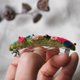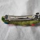 这款发夹使用了缤纷的绣线,充满乐趣。 部分区域以刺绣包裹着镜面,光线折射下闪烁着美丽的光芒。 内部填充了棉,因此呈现出像照片中一样的立体感。 尺寸:8cm (发夹五金7cm) 厚度1cm 材质:毛毡 镜子 黄铜 羊毛 棉