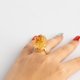 The ring is made of sugar crystals. It cannot be eaten as it has been coated with sugar. The case is made of brass, plated with 9k gold.