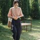 设计馆所有产品均为独立设计,包括挑选面料、辅料、跑加工厂等等都是亲历亲为,所用的面料都以天然环保的面料为主。