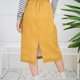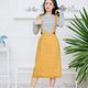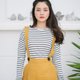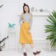 - Overall Linen Skirt With Adjustable Stripe and Topped with button-closure Wooden button / Yellow Mustard Color