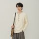 - 【花瓣】都市复古/彩扣一字贝明线亨利领长袖打底/圆领卫衣