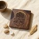 盘面雷射雕刻莲花与“生命之花”神圣几何图腾,中间镶嵌一颗虎眼石,上方再手工描上一道金色弧线,线条简洁又带有仪式感。