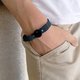 黑玛瑙蕴含深厚**接地能量**,帮助佩戴者在变化中稳住自己。深佩托蓝皮革调和了阴阳气质——安静、神秘、流动。银间隔珠则静静闪亮,不张扬。