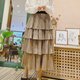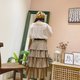 [松紧腰头] 松紧腰头的弹性久带 让穿衣服的舒适度提升 [蛋糕裙的浪漫] 层层叠叠的蛋糕裙摆 运用麂皮的布料 呈现出秋冬的大人感 加上压褶的层叠堆起 穿起来一点也不厚重 非常修饰下半身的身形 黑色和卡其色都是好犹豫的颜色 不管是搭配衬衫还是休闲的MIX MATCH 都能完美的诠释优雅的style