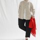 It's oversized yet flattering thanks to this rich linen material and could be paried with any kinds of bottoms.