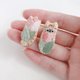 郁金香和猫刺绣耳环。