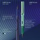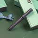 薄荷绿色铝合金烤漆笔身与笔盖,黑色笔夹造型设计,笔盖顶端为薄荷绿色,半透明薄荷绿色人体工学三角前端握把,使用黑色不锈钢笔尖,墨水辨识视窗