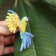 展翅飞翔的黄金刚鹦鹉制作超级费工,它的羽毛是一根根戳好再固定的,花了我很多时间制作,非常细腻,使用自己手染的彩虹羊毛制成。