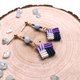 马赛克系列四格方块小耳环,搭配摩根石,紫色鸢尾花的颜色