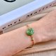 - 平安扣大小约:16.2X5.5mm (特色件) 手围:15.5cm-19.5cm (4厘米缓冲扣) 种水:糯种 产地:缅甸翡翠A玉 材质:14K包金