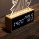 - 本商品套件含「客製化压克力灯片」、「实木时钟底座」、「客製化文字实木木盒」各一件。100%榉木实木框。光源独立单切开关。万年曆数位时钟底座。温度计(支援切换华氏、摄氏)。最多可设定3组闹钟。