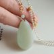天然和田玉晴水水滴无事牌吊坠,精工雕琢,冰底细腻,搭配精美白水晶珠链,坠尺寸约41×23.5×5.4mm