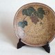 这件作品采用信乐黏土在陶轮上制作,葡萄图案由手工精心绘制,一点一点地绘制,然后反复烧制完成。四边造型柔和,边缘以抹刀刻划,赋予其独特的个性。底座也经过精心打磨。底座上手写着名字。