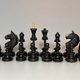 苏联时期原创西洋棋艺术的绝佳典范。此款式名为“埃及”,于 1947 年至 1955 年间在(俄罗斯中部)基洛夫地区生产。未加铅。极具可玩性。无修补痕迹。全由木制。所有棋子均为原装。国王棋子高 10.3 厘米。