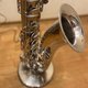 台灯由旧萨克斯管制成。 它看起来令人印象深刻,绝对可以装饰任何房间——无论是卧室还是卧室、客厅还是阁楼。 萨克斯管安装在稳定的金属底座上。 不包括灯罩。 配备开关在 e27 灯座上。 该套件包括一个用于墙壁插座的适配器。