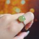 - 招财|无烧冰胶黄翡秋香绿大蛋面|缅甸A货翡翠纯银简约蕾丝戒指•可调•附证书 裸石尺寸:11.6×4.5mm