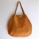 It is a round type tote bag using angora velor (cattle floor leather) and extreme thick oil nude.
