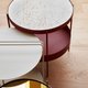 丹麦家居品牌 - 独特性高、不撞衫的创意设计家具!设计师首推【酒红色水磨石桌面金属茶几】简约有质感的圆桌/矮桌/边桌,光面、带金色石纹的水磨石桌面、搭配暗红色的金属桌脚和收纳层,特别的低调奢华感。