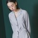 - 修身版型、棉质混纺、V领设计、前襟排扣、袖口松紧带、侧开口袋、绑带设计。