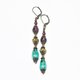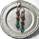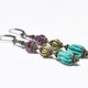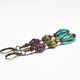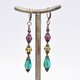 连接绿捷克珠、酒红复古珠、手鞠黄铜和石榴石的耳针。