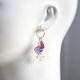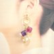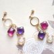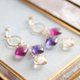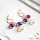 其中一个是赤紫色,一个是青紫色,第三个则将花朵与金箔封入方形零件中,并悬挂于圆环零件上。